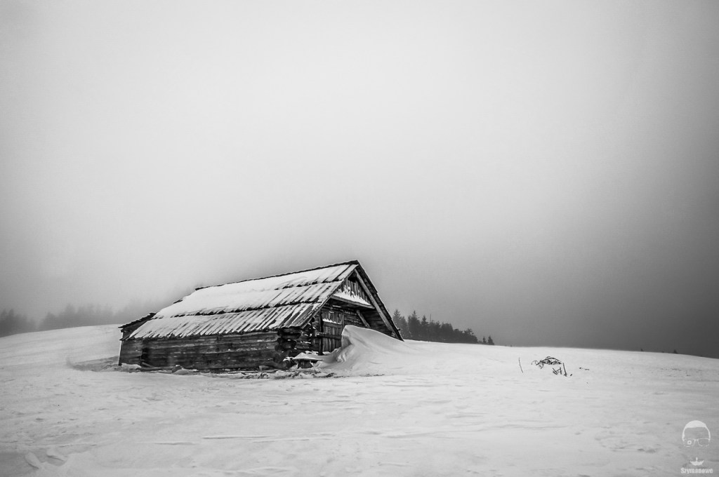 Aura była naprawdę paskudna, ale wpadłem na pomysł, że podejdę do bacówki na Małej Rycerzowej. Chatka jest bardzo fotogeniczna i uzałem, że fajnie będzie pokazać ją w tym surowych warunkach. Tak na marginesie to mogę wam zdradzić sekret, że pomagałem przy jej wznoszeniu ;P