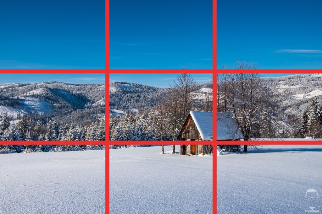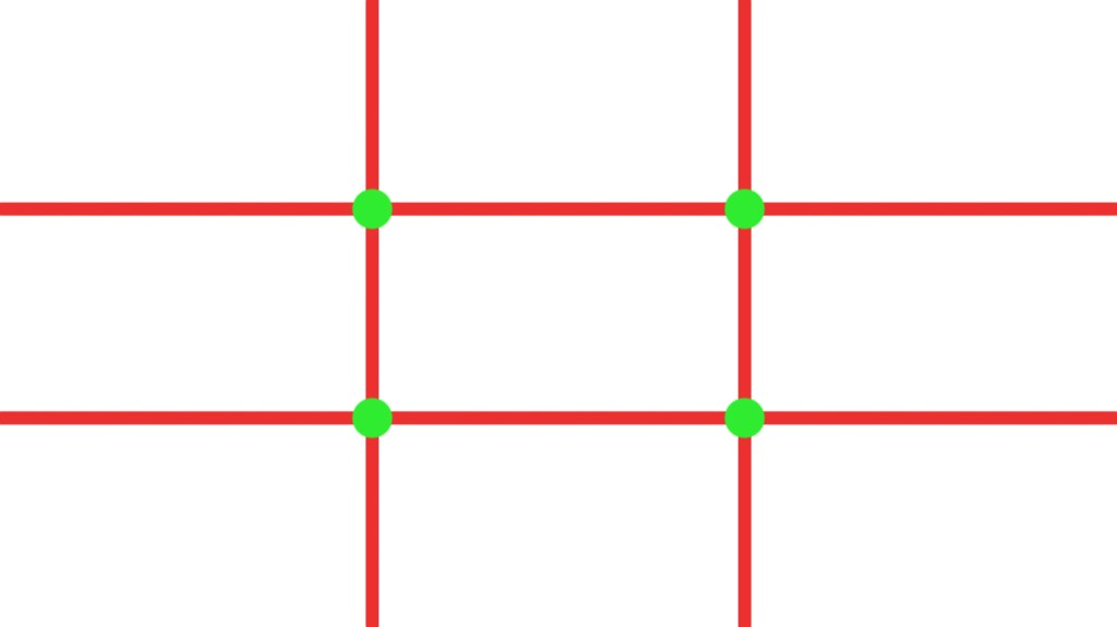 Druga zasada wynika bezpośrednio z pierwszej. Jeśli podzielimy kadr zgodnie z regułą trójpodziału naszym oczom ukaże się siatka, jak widać w punkcie powyżej.