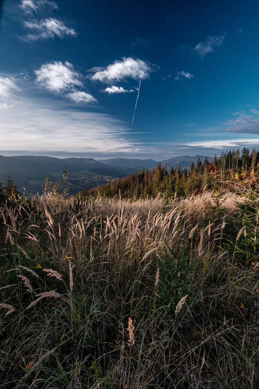 Z powrotem szedłem niebieskim szlakiem na przejście graniczne w Glince. Jest tutaj kilka miejsc z ciekawym widokiem, ale moim zdaniem największą zaletą tej trasy jest jej długość. Myślę, że przy dobrym tempie spokojnie można by w niecałe pół godziny dostać się z parkingu przy przejściu granicznym na szczyt.