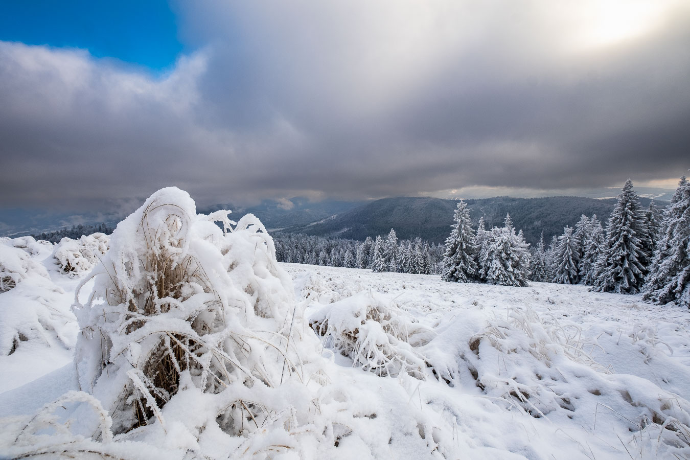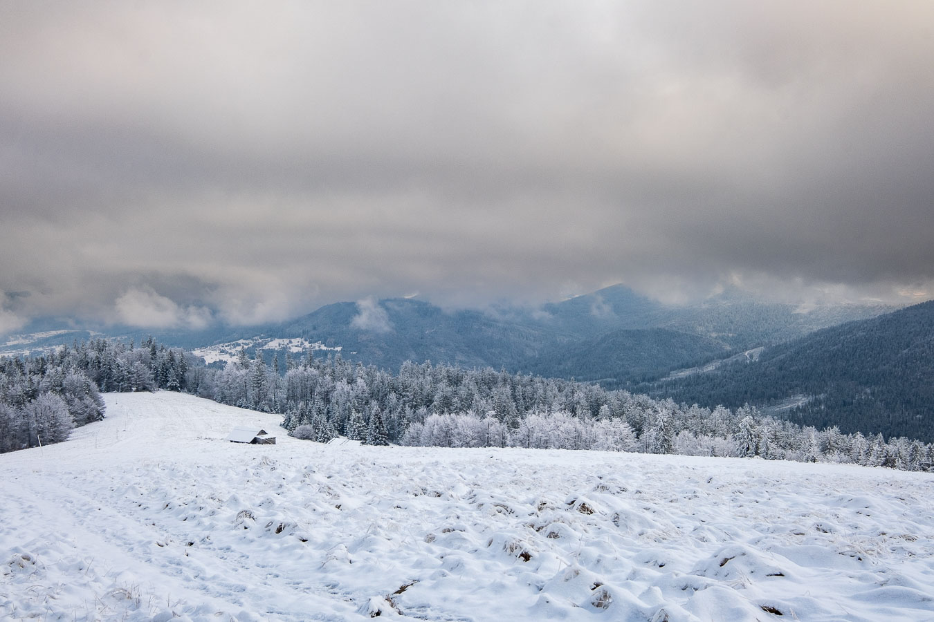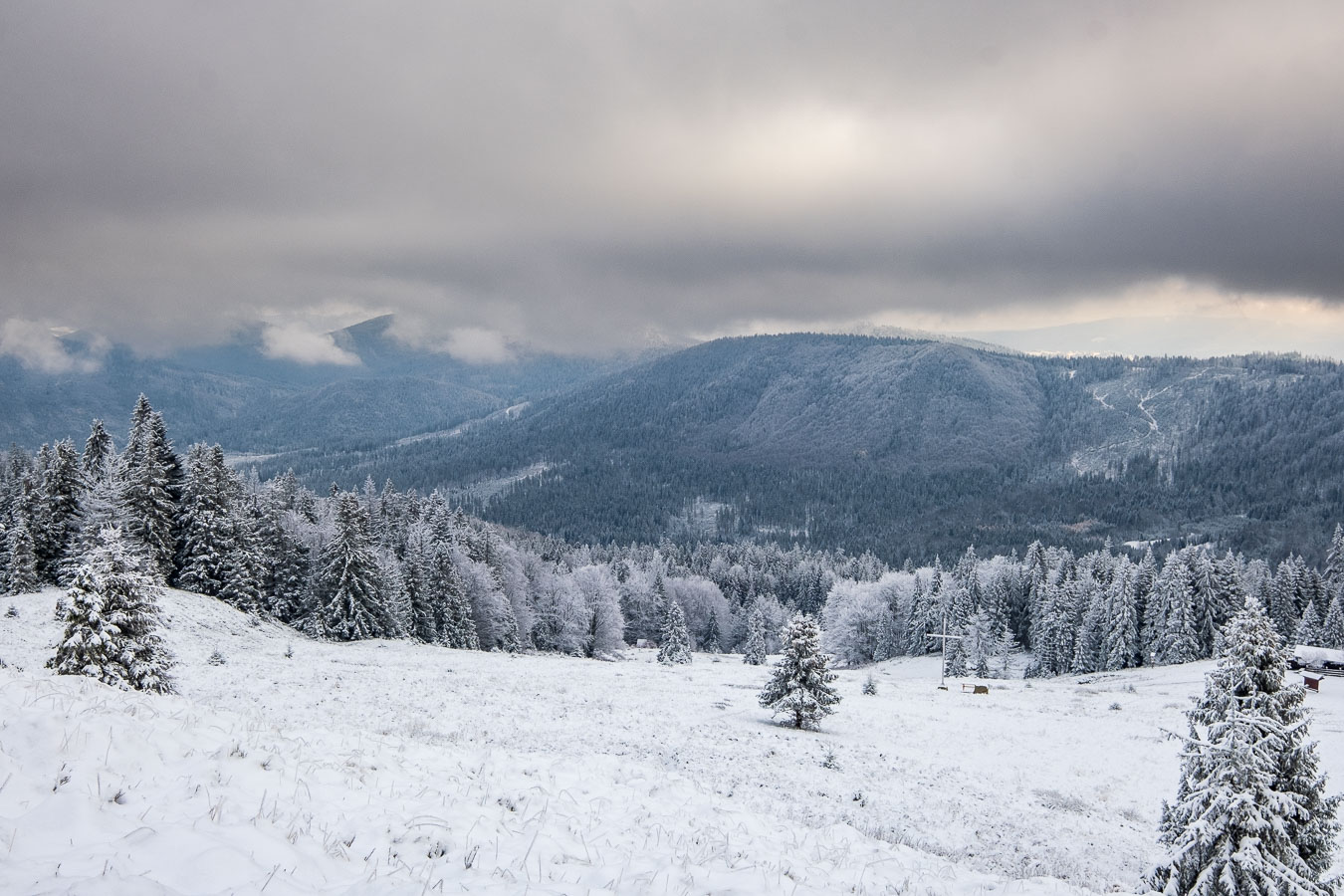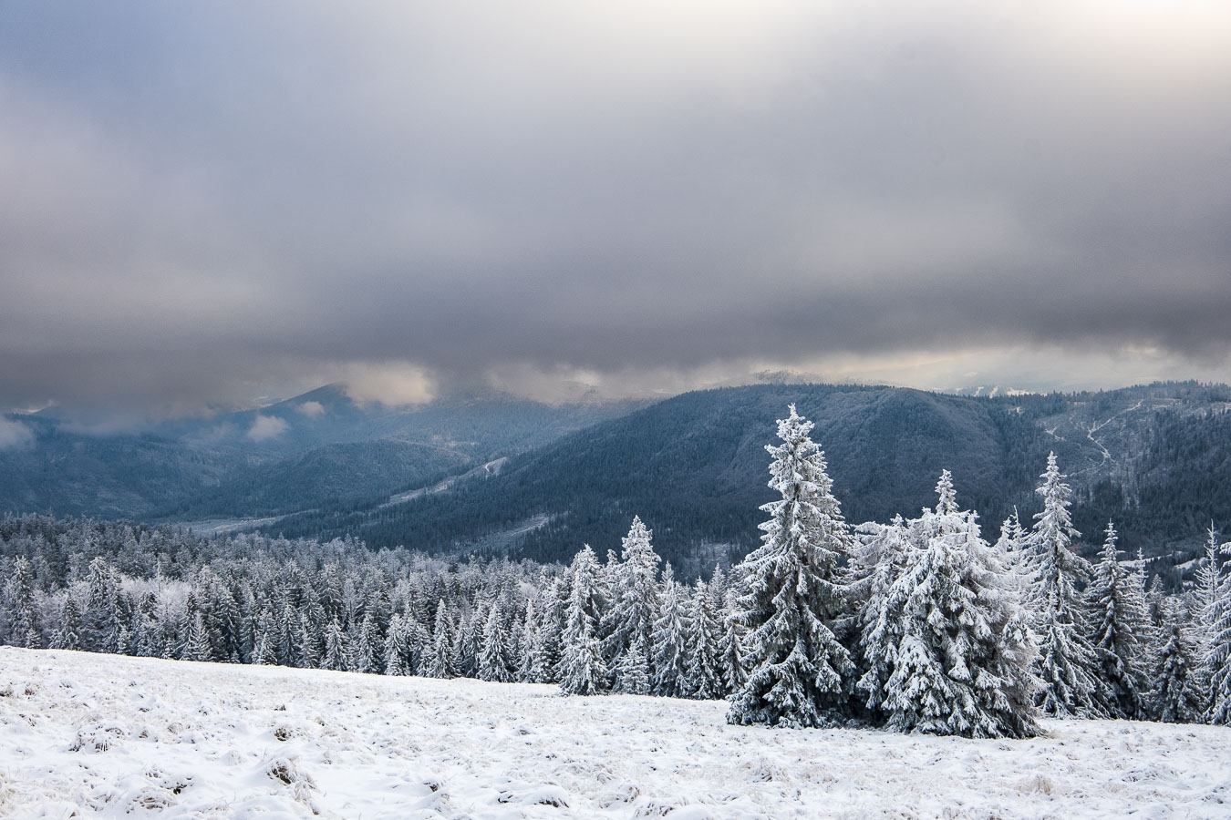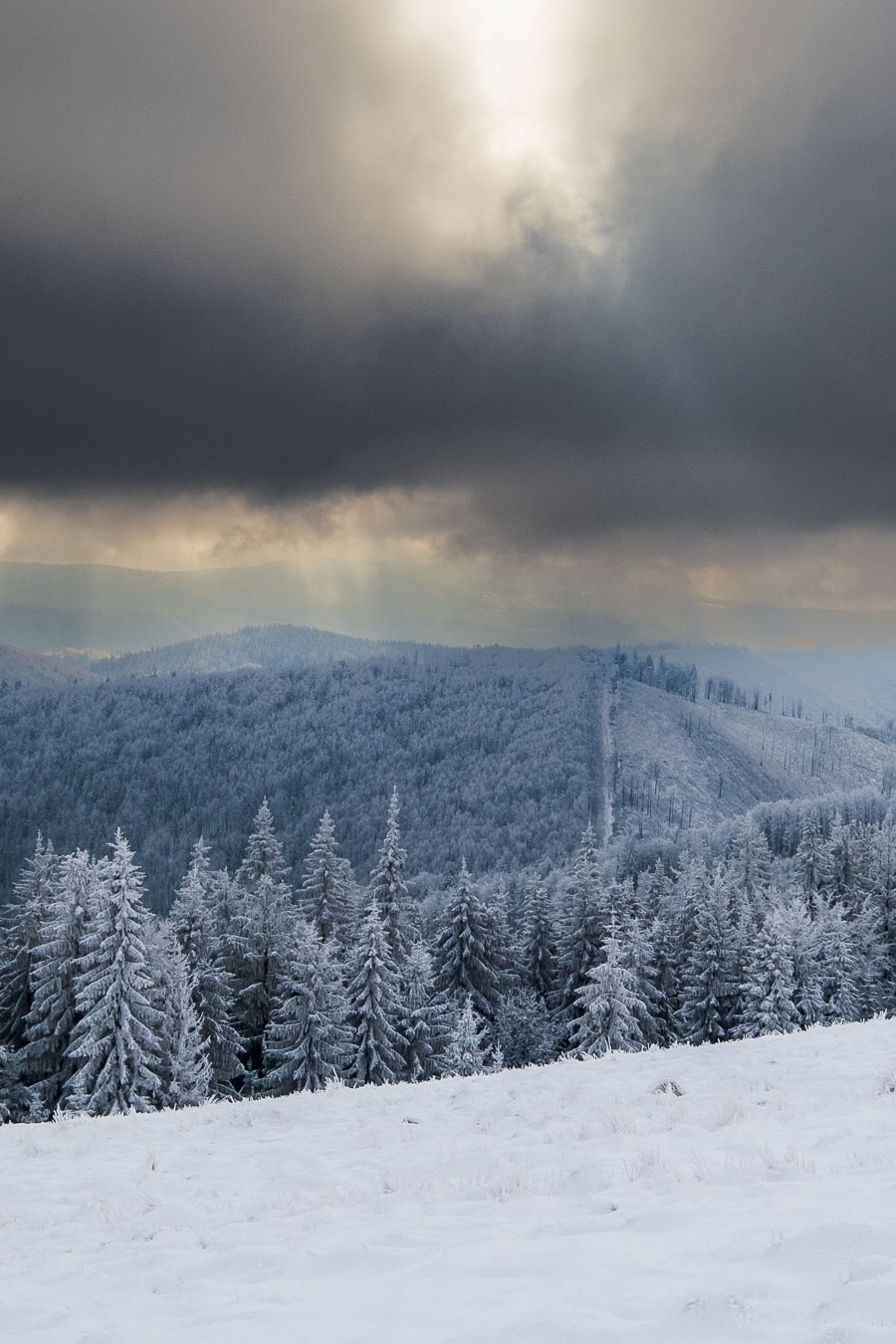 Jak to zwykle bywa w moich samotnym wyprawach, musiałem się najeść nieco strachu. I to dwa razy! Mój pierwszy raz był zaraz za Przełęczą Kotarz. Dla jasności, pierwszy raz, kiedy odczułem strach tego dnia. Wchodzę sobie na zielony szlak na Wiertalówkę. Patrzę, a tu pełno świeżych śladów. Śladów nie byle kogo, bo wilków. Myślę sobie: „Kurde. Taką dobrą swojską kiełbachę se wziąłem na drugie śniadanie. Przyjdą bestie kupą i mi to zeżrą…” A tak całkiem poważnie to serce zabiło mi nieco mocniej, ale spokojnie ruszyłem dalej. Wilki szły w przeciwną stronę, a dodatkowo mało prawdopodobne, żeby narobiły mi jakichś kłopotów, bo od bodaj 1945 nie odnotowano w Polsce ataku wilka na człowieka. Tak więc poszedłem sobie elegancko na Wiertalówke, gdzie czekało mnie coś dużo gorszego…